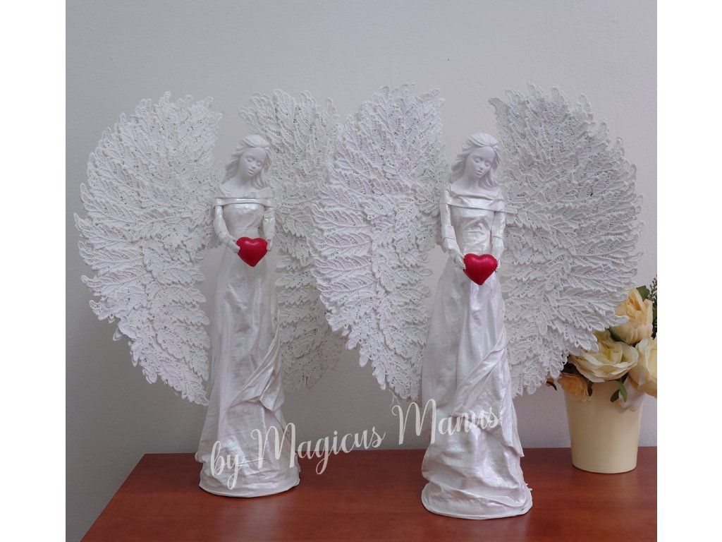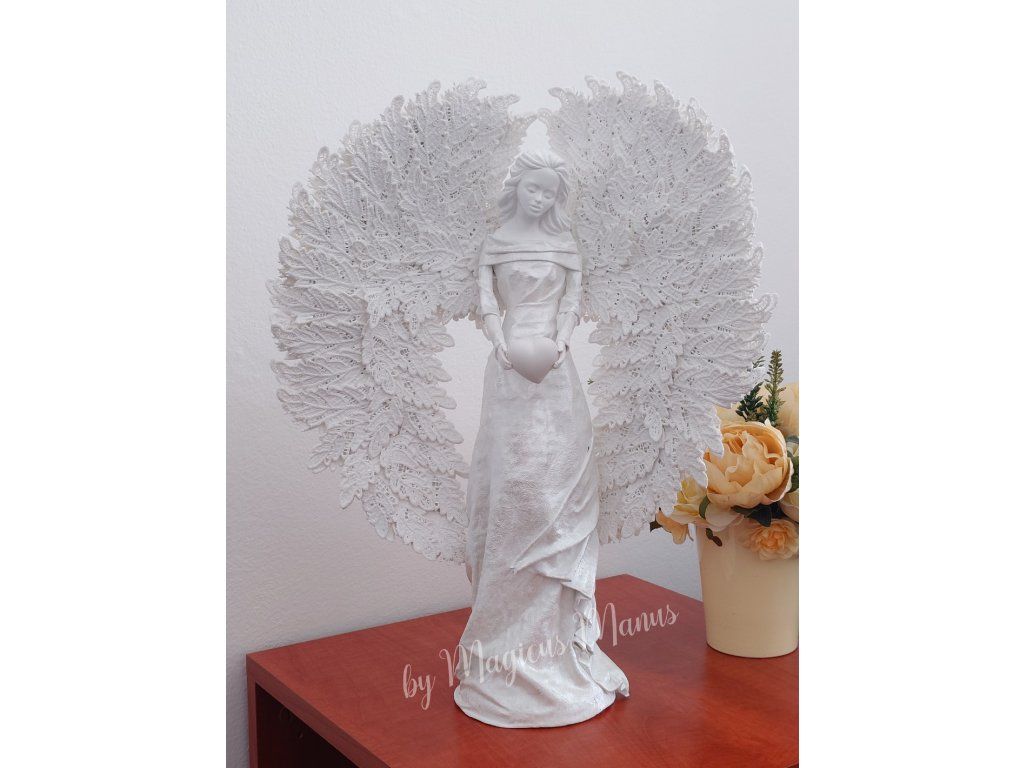 Anděl v bílé o výšce 49 cm, barvu srdíčka prosím uvádějte do poznámky při objednání. Jedná se o ruční práci, proto je každá soška originál.