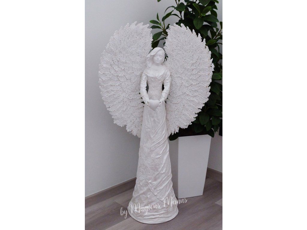 Anděl bílý o výšce 84cm. Jedná se o ruční práci, proto je každá soška originál.