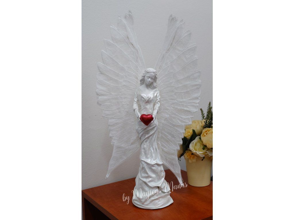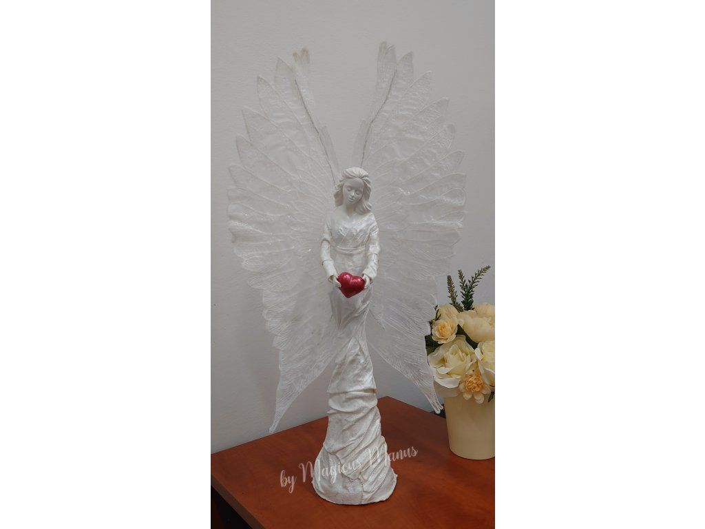 Anděl v bílé o výšce 57 cm, jedná se o ruční práci, proto je každá soška originál