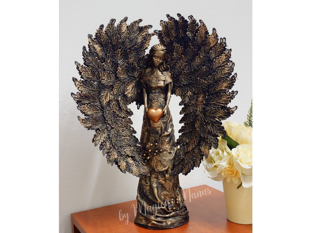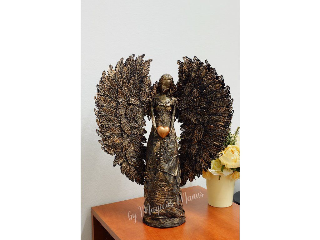 Anděl bronzový s velkými křídly o výšce cca 52cm, jedná se o ruční práci, proto je každá soška originál