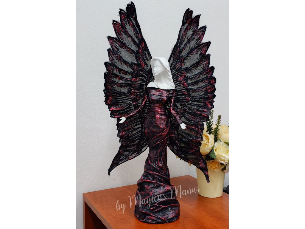 Anděl černočervený o výšce 57 cm, jedná se o ruční práci, proto je každá soška originál.
