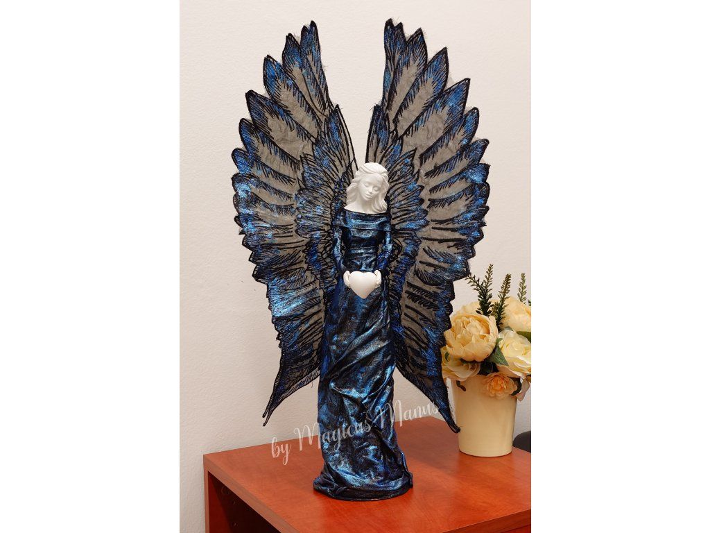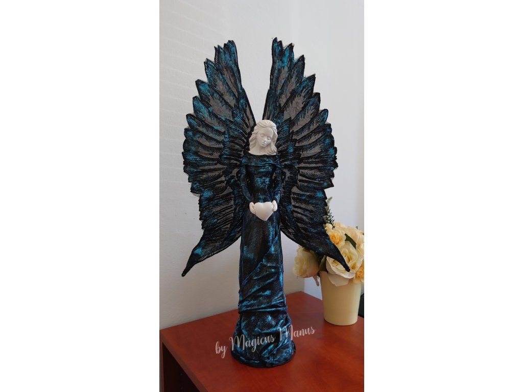 Anděl v černomodré o výšce 57 cm, jedná se o ruční práci proto je každá soška originál