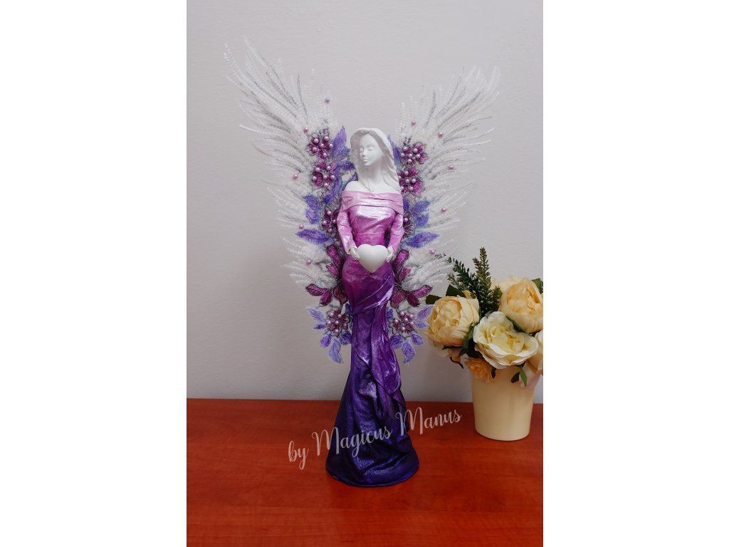 Anděl ve fialovorůžové o výšce cca 52cm, jedná se o ruční práci, proto je každá soška originál.