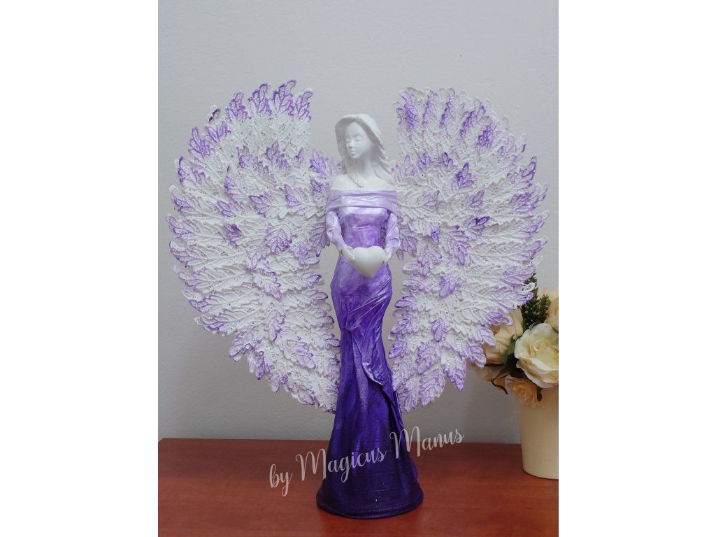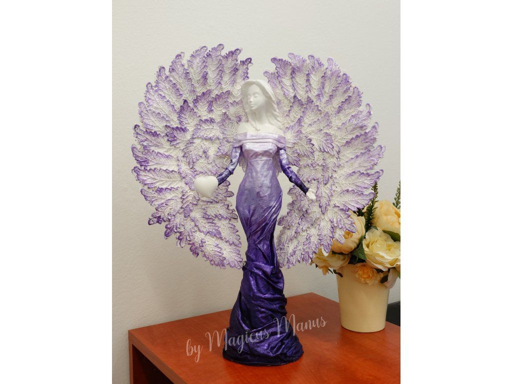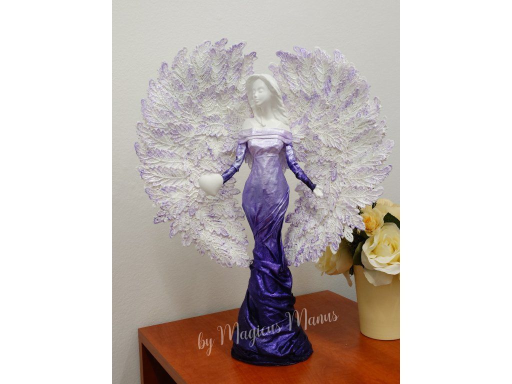 Anděl ve fialové o výšce cca 49 cm, do poznámky při objednání prosím uveďte zda má anděl srdíčko držet oběma rukama nebo pouze jednou. Jedná se o ruční práci, proto je každá soška originál.