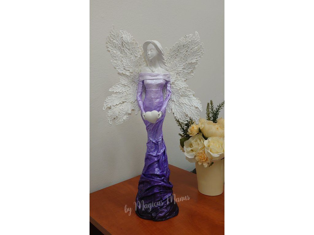 Anděl ve fialové o výšce cca 45 cm, jedná se o ruční práci, proto je každá soška originál.