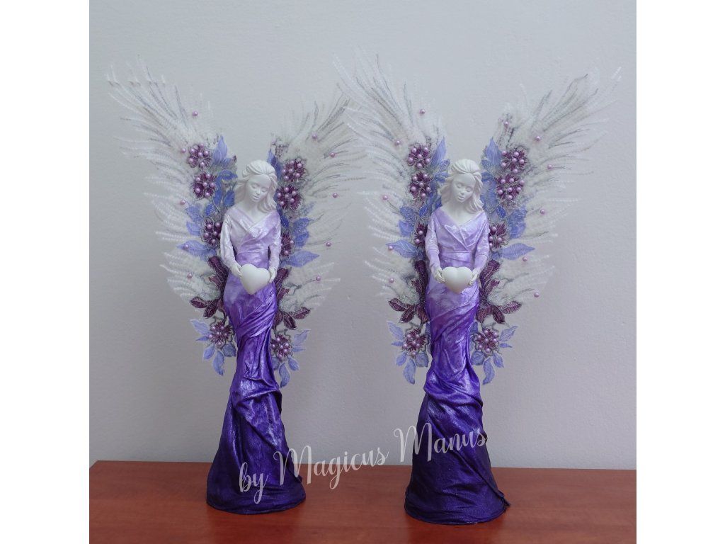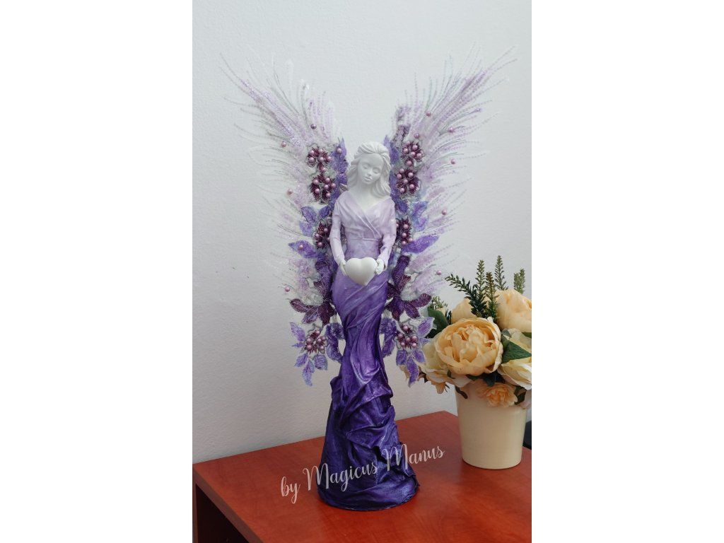 Anděl ve fialové o výšce cca 52 cm, jedná se o ruční práci, proto je každá soška originál