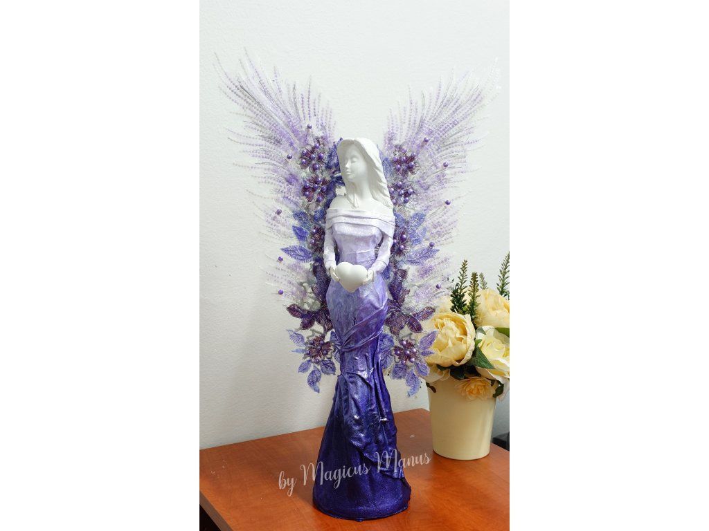 Anděl ve fialové o výšce cca 52 cm, jedná se o ruční práci, proto je každá soška originál