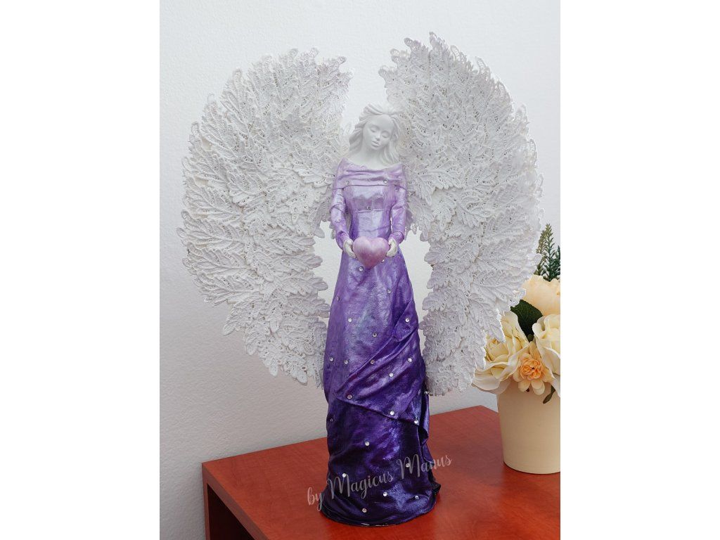 Anděl ve fialové s kamínky, výška cca 49cm, jedná se o ruční práci proto je každá soška originál