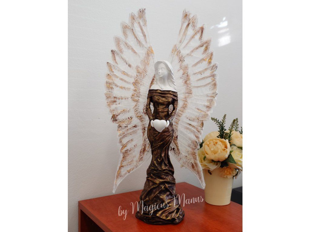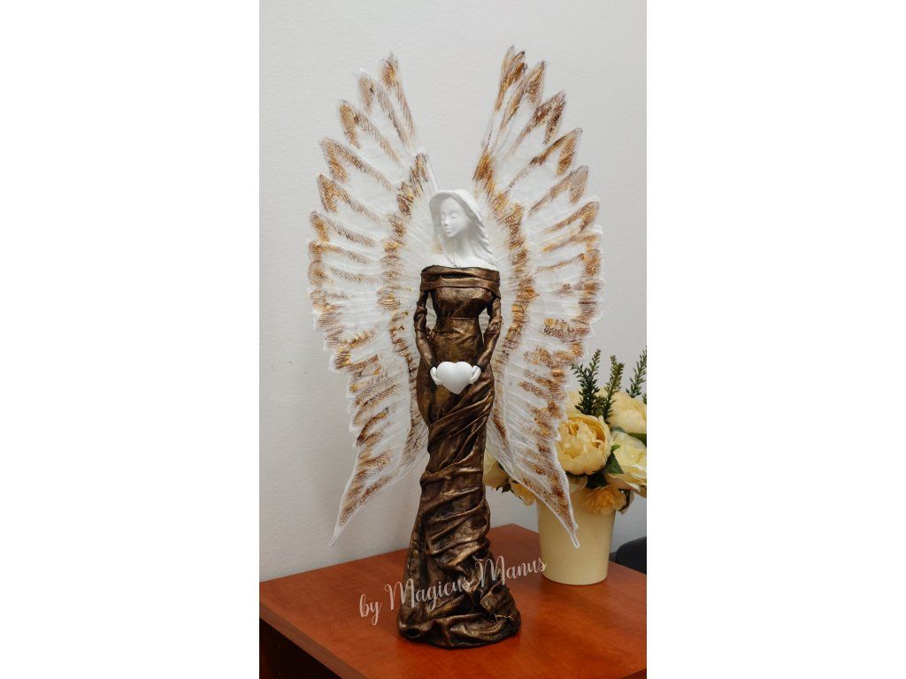 Anděl hnědozlatý o výšce 57 cm, jedná se o ruční práci, proto je každá soška originál