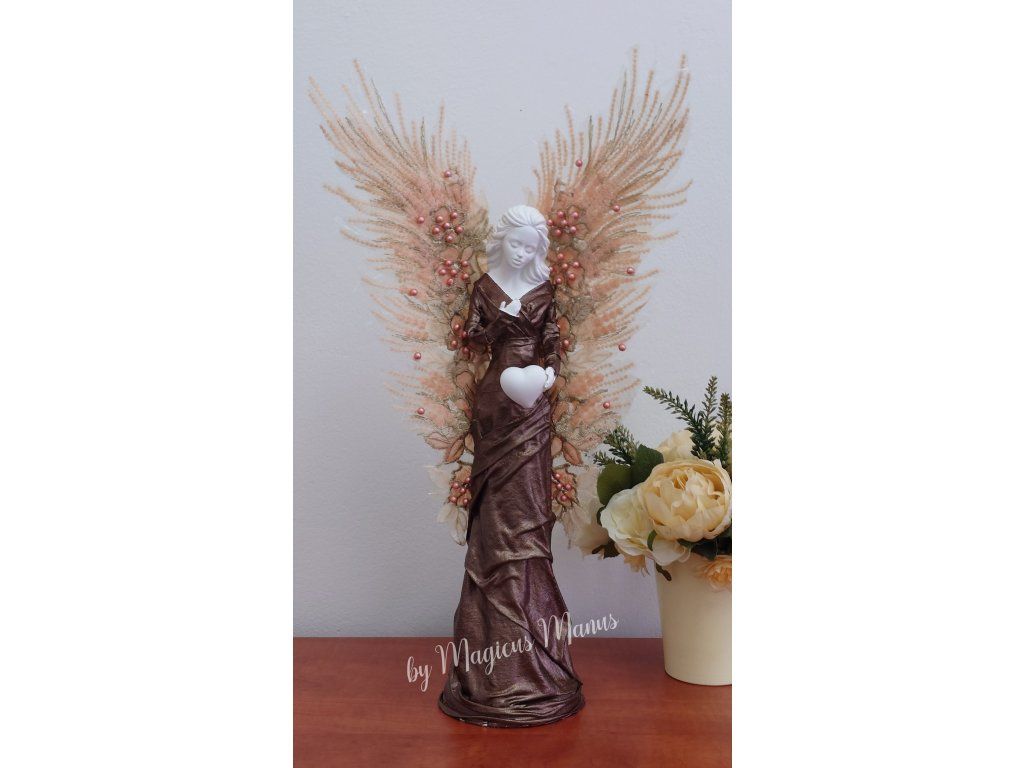 Anděl v hnědé o výšce cca 52 cm, jedná se o ruční práci, proto je každá soška originál