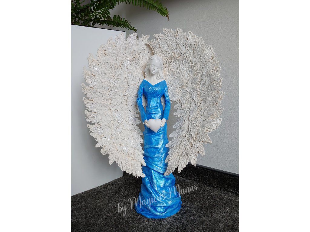 Anděl v modré o výšce cca 49cm, jedná se o ruční práci proto je každá soška originál