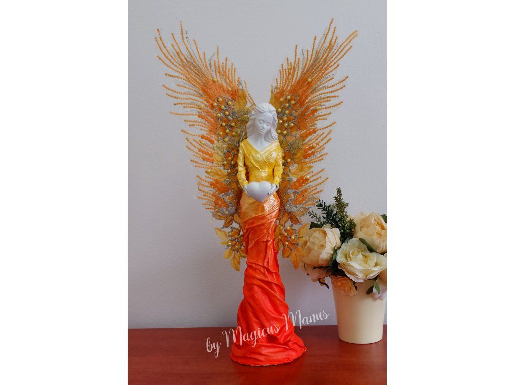 Anděl v oranžovo žluté o výšce cca 52 cm, jedná se o ruční práci, proto je každá soška originál