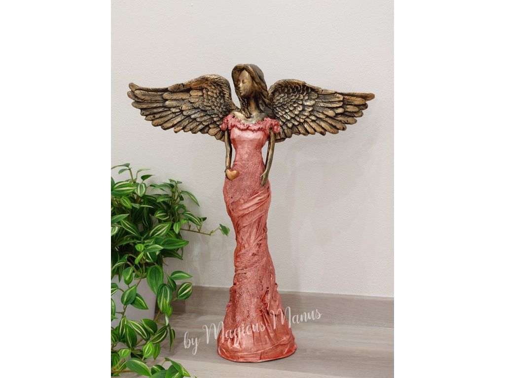 Anděl v růžovozlaté o výšce cca 49cm, jedná se o ruční práci proto je každá soška originál.