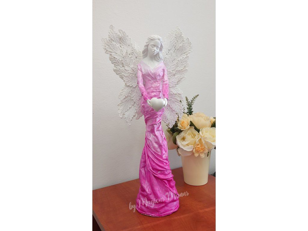 Anděl v růžové o výšce cca 45 cm, jedná se o ruční práci proto je každá soška originál