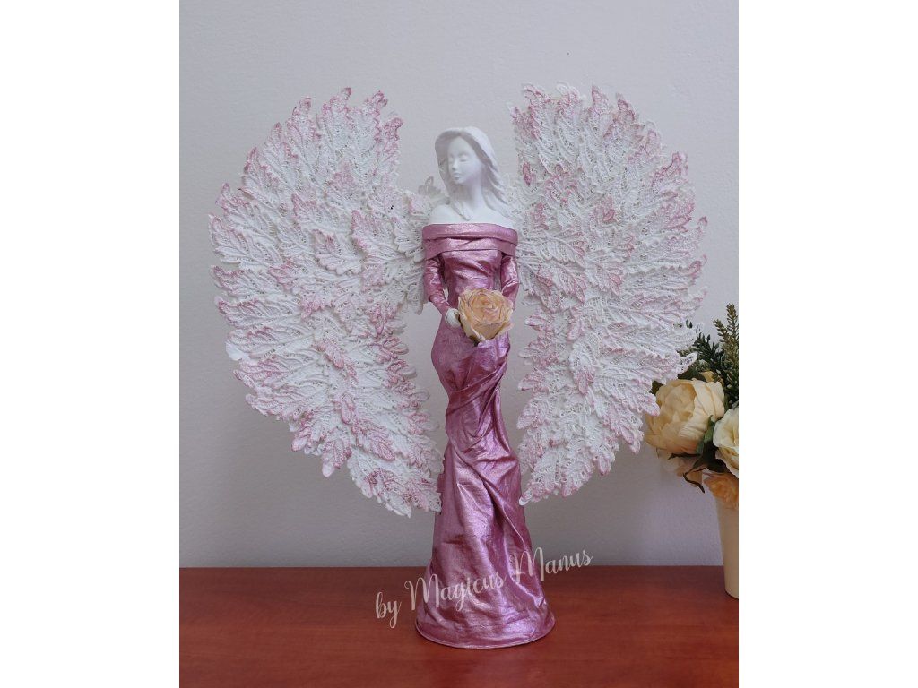 Anděl ve starorůžové o výšce cca 47 cm, jedná se o ruční práci, proto je každá soška originál