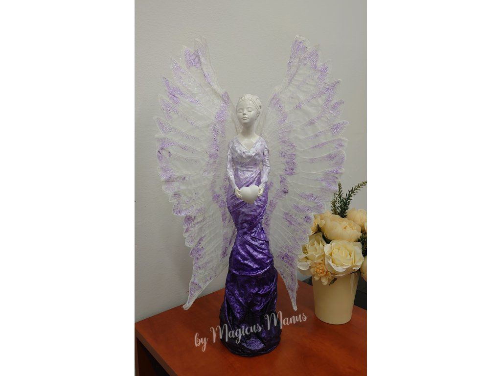 Anděl ve fialové o výšce 57 cm, jedná se o ruční práci, proto je každá soška originál. Je možné vyrobit v jakékoliv barvě, stačí napsat do poznámky při objednání.