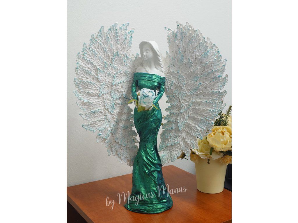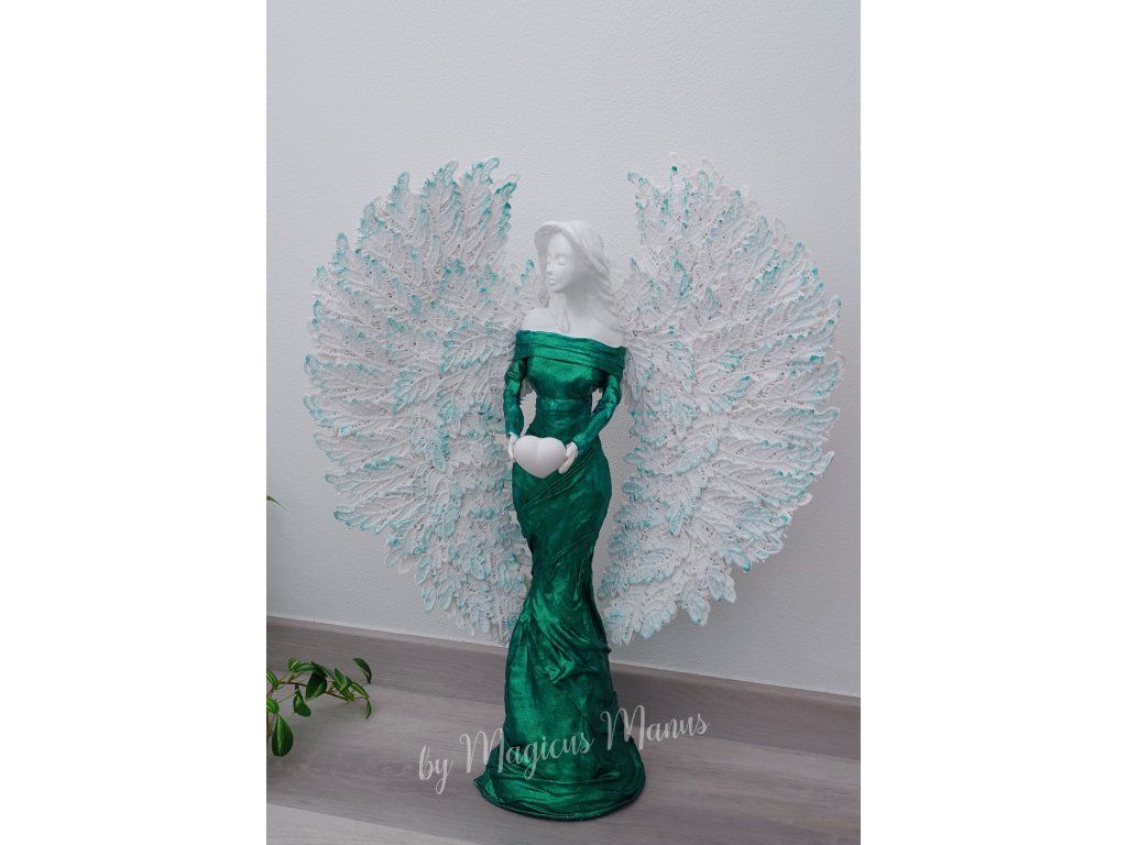 Anděl v zelené o výšce cca 48 cm, jedná se o ruční práci, proto je každá soška originál.