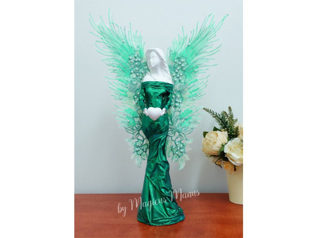 Anděl zelený o výšce cca 52 cm, jedná se o ruční práci, proto je každá soška originál