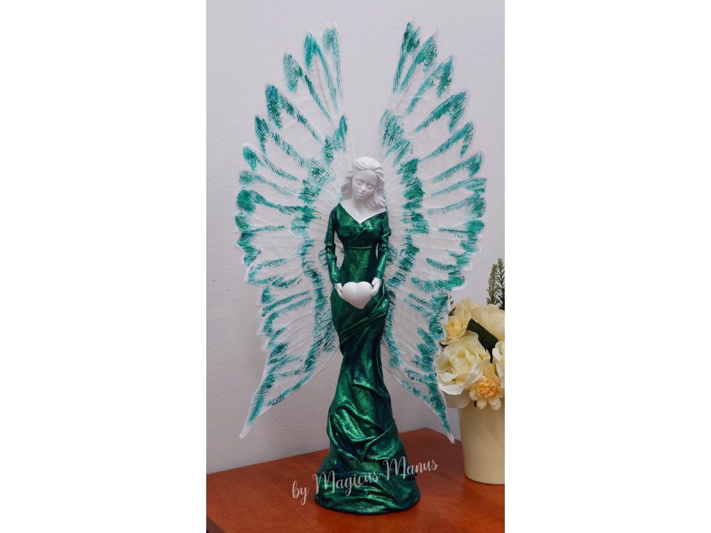 Anděl v zelené o výšce 57 cm, jedná se o ruční práci, proto je každá soška originál.