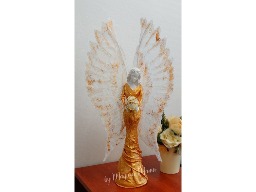 Anděl ve zlaté o výšce 57 cm, jedná se o ruční práci, proto je každá soška originál